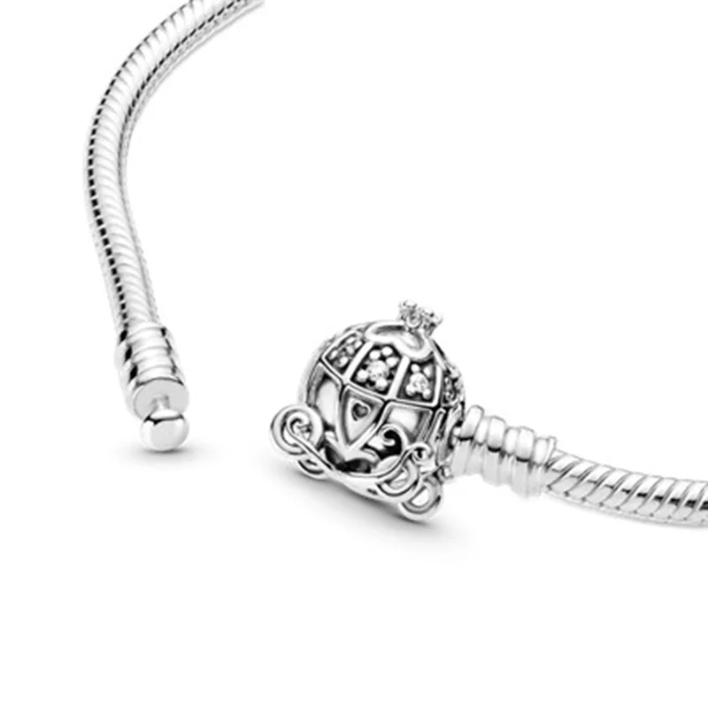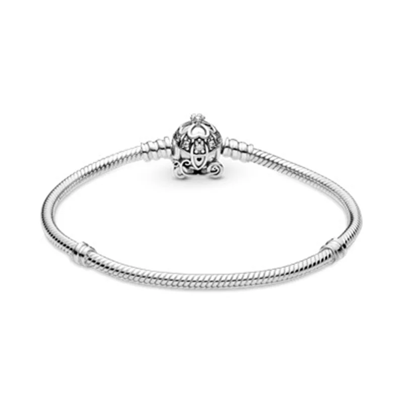 با دستبند دقایق کالسکه کدو تنبلی سیندرلا دیزنی پاندورا، یک آرزو کنید.این قطعهی نقرهای به صورت دستی به افتخار هفتادمین سالگرد سیندرلای دیزنی طراحی شده است.گیرهی دستبند که به شکل کالسکه کدو تنبلی سیندرلا ساخته شده است دارای جزییات بینظیر بوده و در هر پنجره یک نگین شفاف برای درخشش بیشتر قرار گرفته است، همچنین در بالای گیره تاج برجستهای در مرکز قلبهای بالای کالسکه قرار دارد که به زیبایی کار میافزاید.به این دستبند دقایق خاص چارمهای دیزنی خود را اضافه کرده و از جادوی آنها لذت ببرید.
