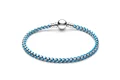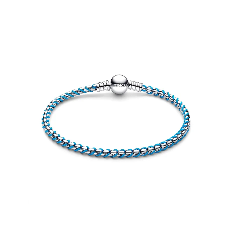 زنجیری ماری از جنس نقره که با بند پارچهای فیروزهای در هم تنیده شده است. استایل خود را با ترکیبی منحصربهفرد از فلز و پارچه ارتقا دهید.