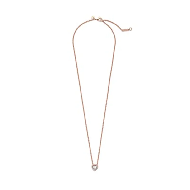 با گردنبند قلب نگیندار درخشان رز گلد پاندورا، در تمامی جمعها متفاوت باشید.طراحی این گردنبند کلاسیک با الهام از کارهای اورجینال پاندورا صورت گرفته و دارای روکش رز گلد ۱۴ عیار میباشد.این گردنبند دارای نگینی قلبی در مرکز خود بوده که با ردیفی از نگینهای کوچکتر احاطه شده است.اندازه زنجیر را با توجه به استایل خود میتوانید تنظیم کنید.برای ظاهری پر عشق این گردنبند را همراه داشته باشید.