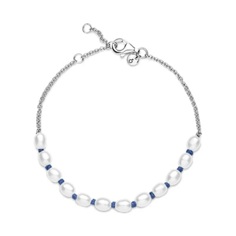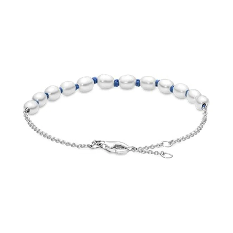 برای اضافه کردن لایههای جدید به ظاهرتان این دستبند مروارید فوقالعاده را به شما معرفی میکنیم.طراحی این دستبند با الهام از روزهای آفتابی ساحل با مرواریدهای پرورش یافته در آب شیرین و گرههای آبی میباشد.در ادامه زنجیری از جنس نقره و در کنار گیره دستبند دیسک کوچکی پاندورایی بودن دستبند را به شما یادآور میشود.در نظر داشته باشید که مواد طبیعی مانند مرواریدها ممکن است با زمان آسیب ببینند.
