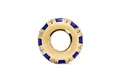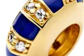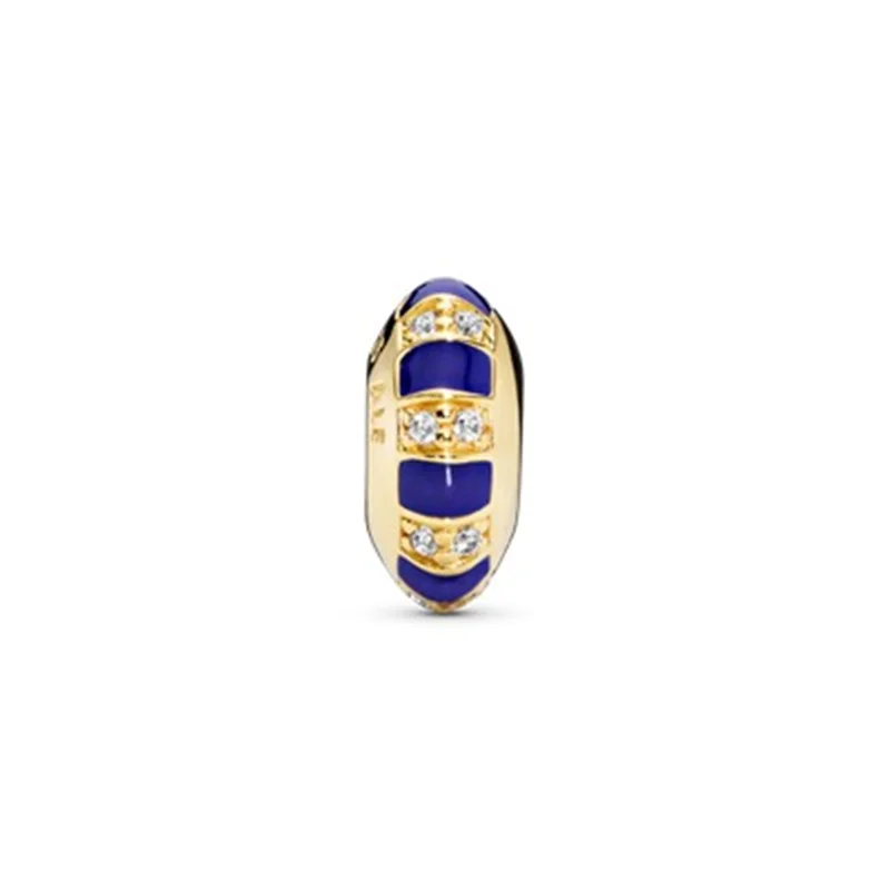 این چارم فاصله دهنده و مهره ای با خطوطی از لعاب آبی و رنگ طلایی خود ابعاد جدیدی به استایل شما می بخشد. روکش این چارم که تماما به صورت دستی طراحی و ساخته شده، طلا 18 عیار بوده و برای درخشش هرچه بیشتر با نگین های شفاف زیرکنیایی تزیین شده است.آن را به دستبند خود اضافه کرده و علاوه بر افزودن رنگ و درخشش به استایل خود، بین ردیف چارم های خود فاصله ایجاد کنید.