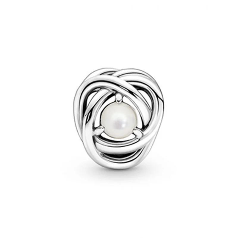 با اضافه کردن چارمهای مهرهای دایرهی ابدی نگیندار پاندورا به دستبندهای خود رنگ و شخصیتی جدید ببخشید.شما میتوانید با این چارم زیبا، تولدی در ماه جان ( ۱۱ خرداد تا ۹ تیر ) را جشن بگیرید.این طرح خاص که چند دایره در هم تنیده را نشان میدهد، در مرکز خود دارای نگینی رنگی و درخشان است.هر یک از نگینها و رنگ آنها به عنوان نمادی برای ماه تولد اشخاص عمل میکنند.این نگین سفید مرواریدی و کدر، نماد دانش، شادی و عشق برای متولدین ماه جان است.شما میتوانید آن را به کلکسیون شخصی خود اضافه کنید یا به یکی از عزیزانتان که در ماه جان متولد شدهاست، هدیه دهید.