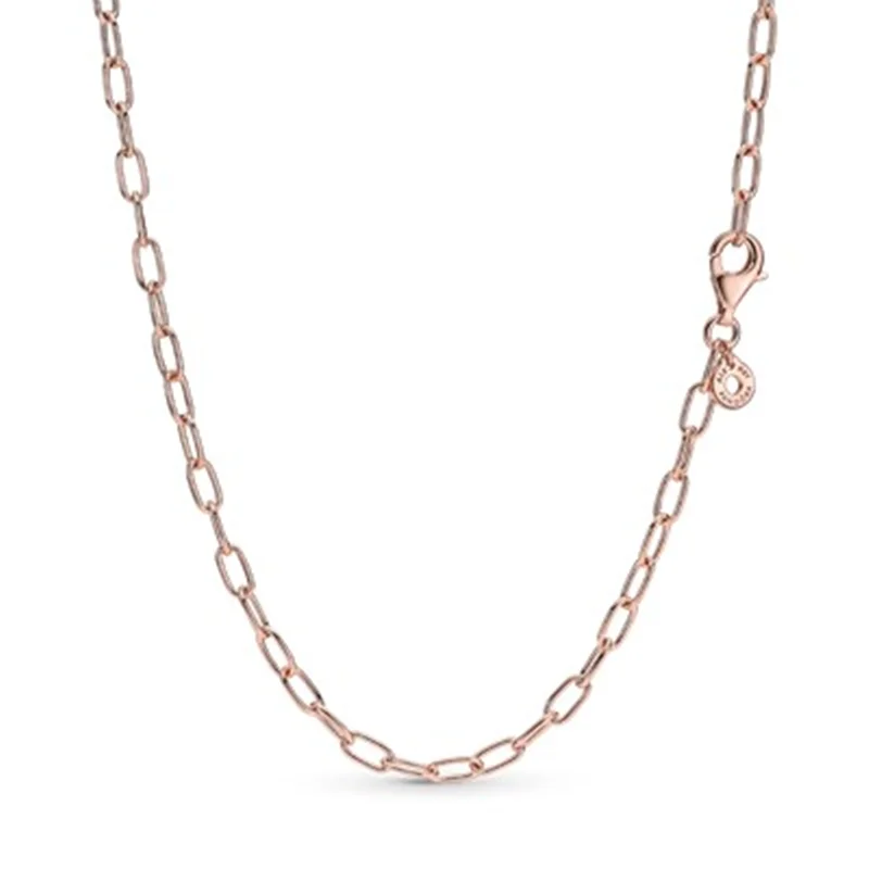 گردنبند زنجیری پاندورا قطعهای کلاسیک از مجموعه پاندورا است که با روکش رز گلد ۱۴ عیار و ظاهری ساده و مدرن به شما معرفی میشود.شما میتوانید با افزدون چارم به این قطعه استایل آن را با توجه به لباسهایتان تغییر دهید.همچنین میتوانید با گردنبندهای دیگر از آن استفاده کنید و ظواهر جدید و منحصر به فرد خودتان را بسازید.