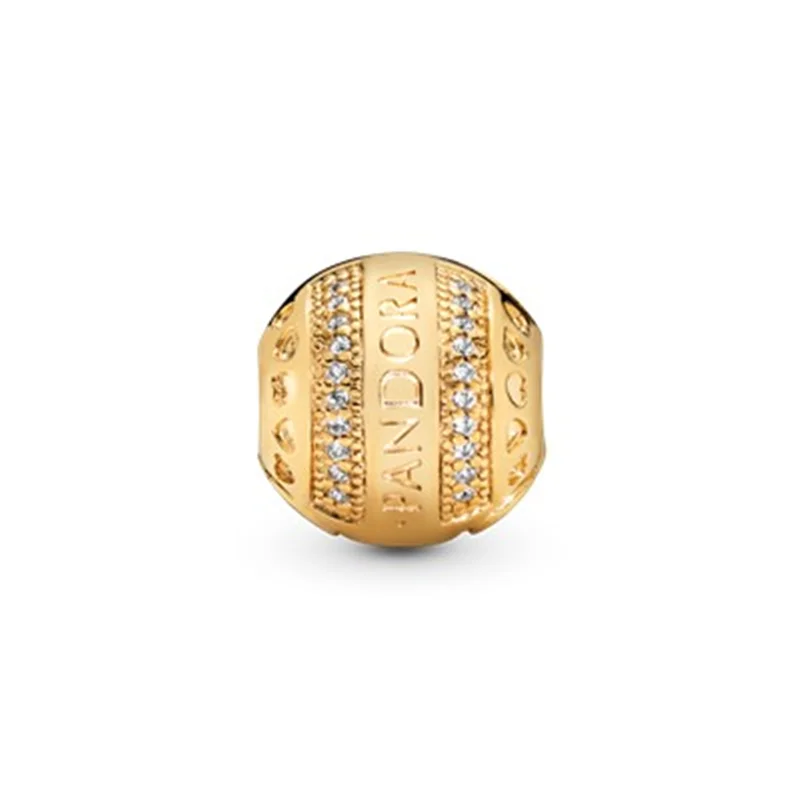 این چارم کلیپی را به مجموعهی خود اضافه کرده و درخشش و ظرافت شخصیت خود را در استایلتان نشان دهید. روی این چارم کروی هم قلب های برش خورده دیده می شود و هم لوگو پاندورا. علاوه بر این با نگین های شفاف برای درخشش هرچه بیشتر تزیین شده است. این چارم کلیپی دارای گیره سیلیکونی بوده و در جای خود روی دستبند مورد علاقه شما ثابت خواهد ماند.