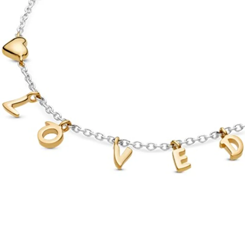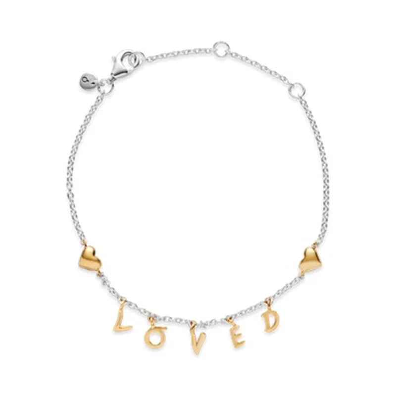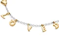 حس خود را با این دستبند دو رنگ هجا کنید! حروف پیام "محبوب" (Loved) با روکش طلا ۱۸ عیار از پایهی زنجیری و نقرهای این دستبند آویزان هستند و خودنمایی میکنند.شما میتوانید اندازهی زنجیر دستبند خود را به سه اندازه تنظیم کنید.آن را حلقه و گردنبند مشابه ست کرده و استایل خود را کامل کنید.