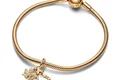 تمام نمادهای خوش شانسی را به رنگ طلای 14 عیار با این چارم آویز سه بخشی به استایلتان اضافه کنید.چارم آویز شبدر چهار برگ،جناغ و نعل اسب خوششانسی طلایی پاندورا دارای نگین های درخشان و شفاف زیرکنیا بر روی استخوان جناغی آرزوها، شبدر چهاربرگ و روی نعل اسب است. با این قطعه خاص از پاندورا برای عزیزانتان آرزوی عشق، موفقیت و محافظت کنید.
