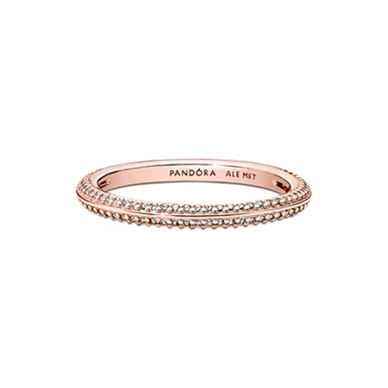 با حلقه ام-ای نگیندار رز گلد پاندورا به ظاهر خود شکل تازهای بدهید و کلکسیون حلقههای خود را کاملتر کنید.این حلقه روکش رز گلد ۱۴ عیار داشته و با کریستالهای شفاف تزیین شده و ظاهری درخشان و خاص دارد.به حلقههای ام-ای دیگر خود این حلقه را اضافه کنید و با چارمهای خود آن را ست کنید.شما با حلقههای ام-ای پاندورا بارها و بارها میتوانید خود را از ابتدا کشف کنید.استایل خود را با این حلقه متفاوت کنید.