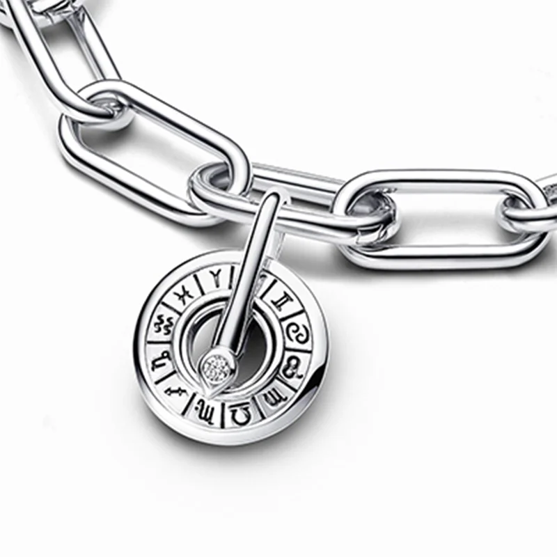 این چارم که چرخه ای از زودیاک یا نمادهای ماه تولد است را به استایل خود اضافه کرده و با آن ماه تولدتان را نشان دهید. این چارم بخش درونی چرخانی داشته و برای درخشش هرچه بیشتر با نگینی شفاف تزیین شده است.شما میتوانید آن را به حلقههای زنجیرهای ام-ای خود با هر رنگ و جنسی اضافه کنید و استایلی چند لایه و متفاوت بسازید.