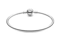براق و ظریف، این دستبند النگویی پاندورا در عین سادگی بسیار زیباست.این دستبند دقایق نقرهای و ساده را به تنهایی در دست داشته یا آن را با چارمهای خود شخصیسازی کرده و داستان خود را با آن بازگو کنید.