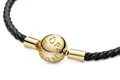 با دستبند دقایق بافت چرم مشکی پاندورا، استایل خود را خیرهکنندهتر کنید.گیرهی این دستبند در رو رنگ طلایی با روکش طلا ۱۴ عیار و نقرهای موجود است.این طرح برای کسانی که میخواهند در هر جمعی متفاوت باشند بهترین گزینهاست.شما میتوانید این دستبند چرم را با چارمهای دلخواه شخصیسازی کرده یا آن را به تنهایی در دست داشته باشید.