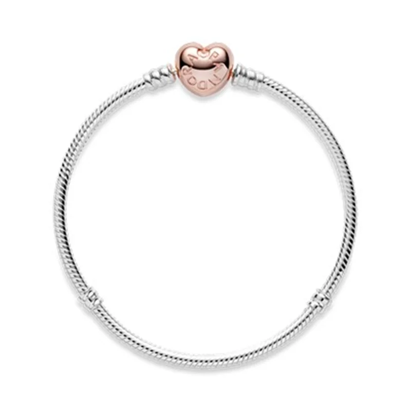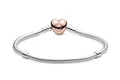 قلب خود را با این نسخه رمانتیک از دستبند پر فروش دقایق پاندورا، به لرزه درآورید.این دستبند نقرهای ساده، که دارای گیرهی قلبی با روکش رز گلد ۱۴ عیار است،به صورت دستی طراحی و ساخته شده است حتی به تنهایی خیره کننده است.مانند تمامی دستبندهای دقایق پاندورا شما میتوانید این دستبند را با چارمهایتان شخصیسازی کرده و استایلی چند لایه بسازید.