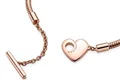 با دستبند دقایق تی-بار قلبی زنجیر طرح ماری پاندورا به استایل خود لحجهای خاص دهید.این دستبند با روکش رز گلد ۱۴ عیار نمونه به روزرسانی شدهی طرح عادی دستبند تی-بار دار قبلی پاندوراست.شما در این دستبند دقایق میتوان ۱۰ تا ۱۳ چارم قرار داد و استایل مدرن منحصر به فرد خود را ساخت.