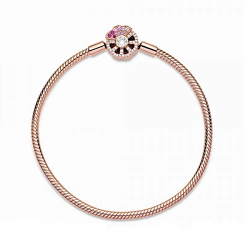 این دستبند درخشان را به استایل خود اضافه کرده و زیباتر از همیشه بدرخشید. گیره این دستبند با روکش رزگلد 14 عیار به صورت دستی به شکل بادبزنی سنتی طراحی و با نگین های شفاف و صورتی درخشان شده است. آن را به تنهایی در دست داشته یا با چارم های مورد علاقه خود تزیین کرده و استایلی خاص بسازید.