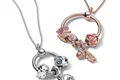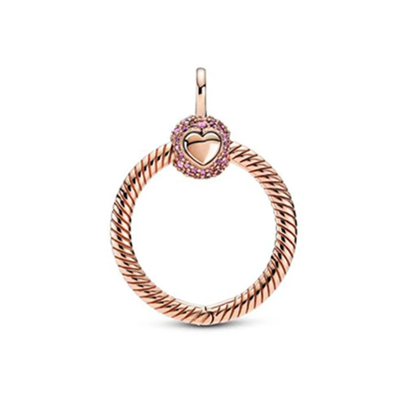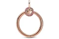با آویز گردنبند بیزنجیر دایرهای نگیندار رزگلد دقایق پاندورا، درخششی صورتی به استایل خودتان اضافه کنید.این قطعه نقرهای، با الهام از لوگوی تاجی پاندورا ساخته شده است.این کار طراحی زنجیر ماری پاندورا را داشته و گیره توپی شکل آن با نگینهای درخشندهی صورتی تزیین شده است. شما این آویز را مانند تمامی کارهای دقایقی دیگر پاندورا،میتوانید با چارمهای خود تزیین کنید.این آویز را باز کرده و حداقل ۳ چارم به آن اضافه کنید.برای چشمگیری هرچه بیشتر میتوانید از چارمهای روکش رز گلد دار استفاده کنید.