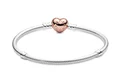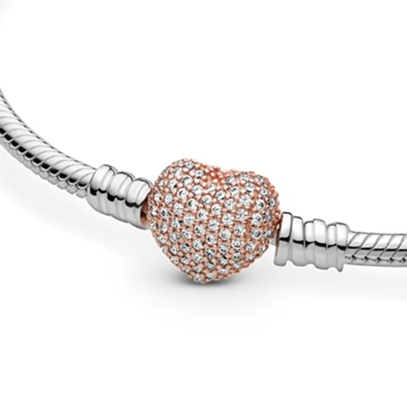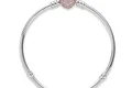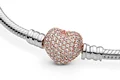 به استایل خود و چارمهای عزیزتان درخشش و رمنس اضافه کنید.این دستبند زیبای نقرهای،زنجیری با طرح محبوب ماری پاندورا داشته و با گیرهای که روکش رز گلد ۱۴ عیار دارد و قلبی شکل و چرخان است،طراحی شدهاست. طرفی از این گیره با نگینهای درخشان تزیین شده و در طرف دیگر آن لوگوی پاندورا حکاکی شدهاست.شما به سادگی با چرخاندن گیره میتوانید دو استایل متفاوت ایجاد کنید.این دستبند دقایق را به تنهایی، یا با چارمهای مورد علاقه خود در دست داشته و بدرخشید.