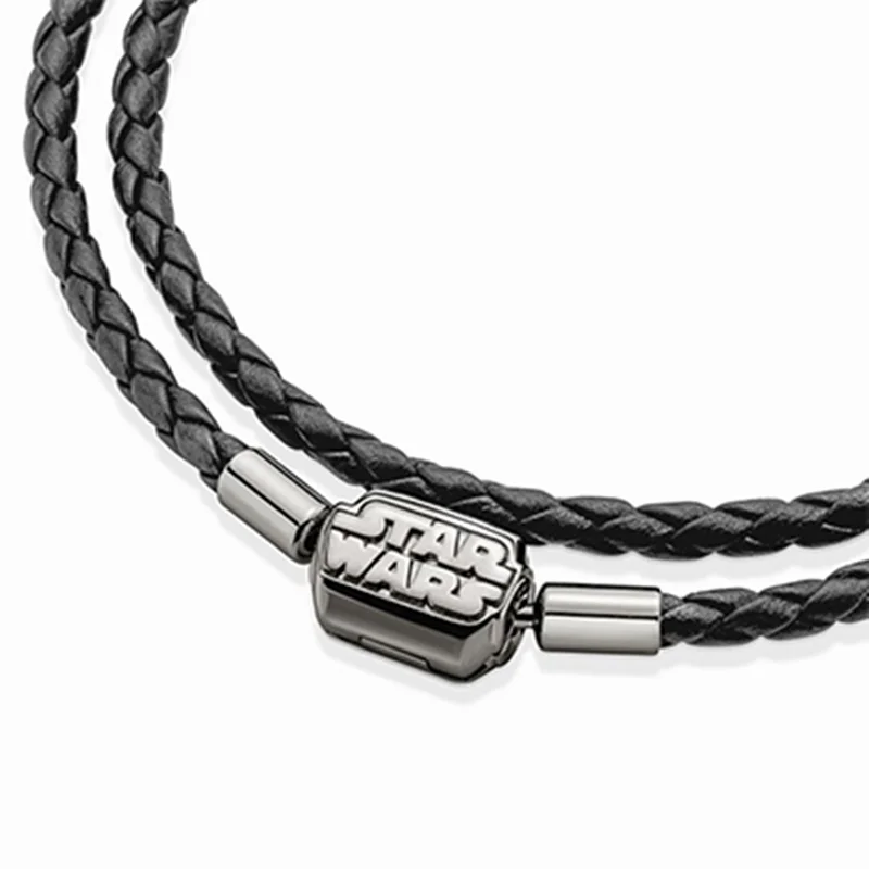 قدرت را با این دستبند همواره همراه داشته باشید! این طرح محدود و خاص با گیره ای به شکل لوگوی فیلم های مشهور جنگ ستارگان ساخته شده است.گیره این دستبند دارای روکش روتنیوم بوده که به آن رنگ خاکستری تیره آن را اضافه می کند.این دستبند را به مجموعه جنگ ستارگان خود اضافه کرده و نشان دهید طرفداری واقعی هستید.