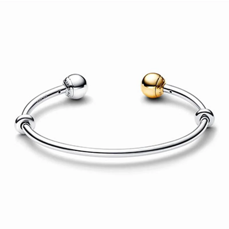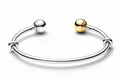 زیبایی آسمانی درون خود را به استایلتان بیاورید! این دستبند دو رنگ با الهام از زیبایی های پر رمز و راز آسمان بالای سرمان طراحی و ساخته شده است. این دستبند نیمه باز تزیین شده با نگین های شفاف بوده و دارای طرح خورشید درخشان و ماهی هلالی است. این دستبند را به جواهرات با طرح مشابه پاندورایی خود اضافه کرده و استایل آسمانی خود را کامل کنید.