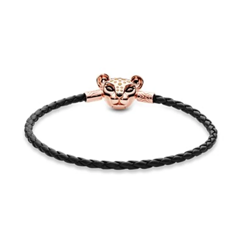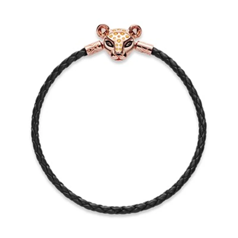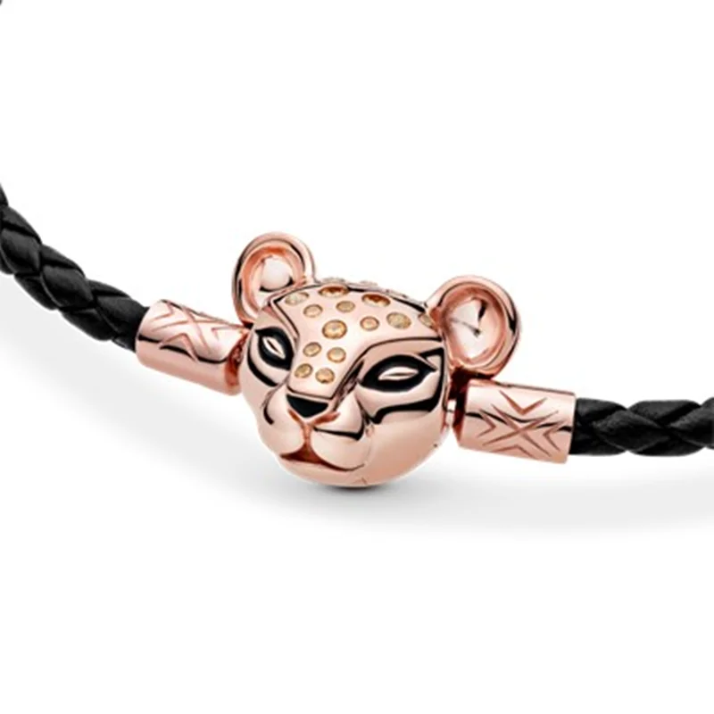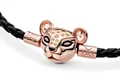 این دستبند چرمی و زیبا تا ۹ چارم مورد علاقه شما را میتواند روی خود داشته باشد.این چارم بافت دارای گیرهای به شکل یک پلنگ وحشی با روکش رزگلد ۱۴ عیار بوده و خالهای او با نگینهای درخشان زرد به نمایش گذاشته شدهاند.جزییات دیگر چهرهی پلنگ شما مانند چشمها، با لعاب مشکی به صورت دستی لعابکاری شده است.این دستبند را به یاد یک ماده شیر یا یک پلنگ زیبا به تنهایی در دست داشته یا با دستبندهای مشابه ست کرده و استایل خاص خود را بسازید.