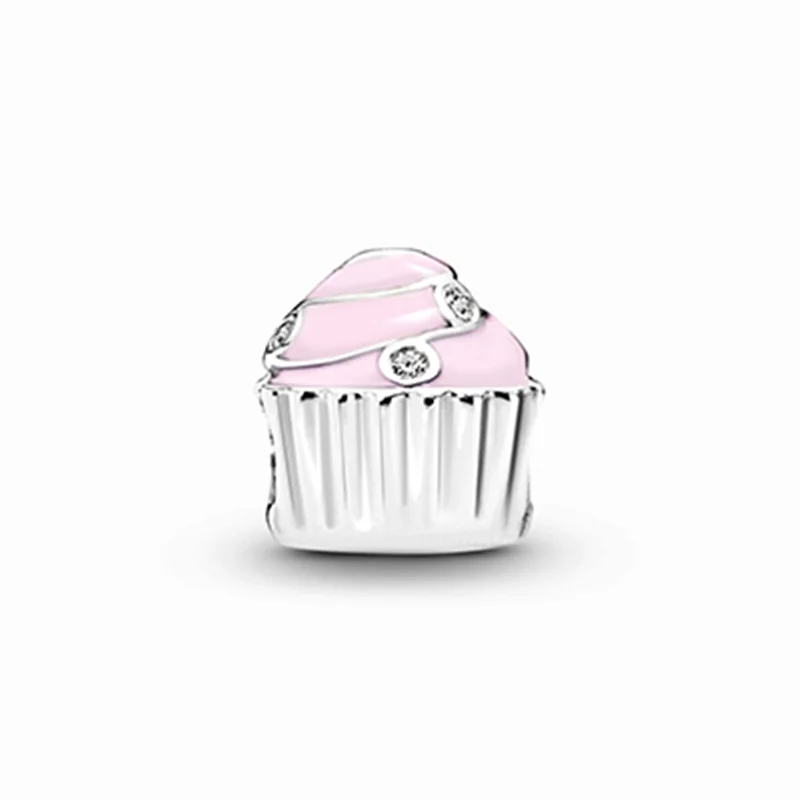 به خود شیرینی دهید! این قطعه که به صورت دستی ساخته و لعاب کاری شده است کاپ کیکی صورتی است که به استایل شما شیرینی می بخشد. این چارم مهره ای برای درخشش هرچه بیشتر با نگین های شفاف تزیین شده است. آن را به چارم های خوراکی دیگر خود اضافه کرده و علایق خود را به جهان نشان دهید.