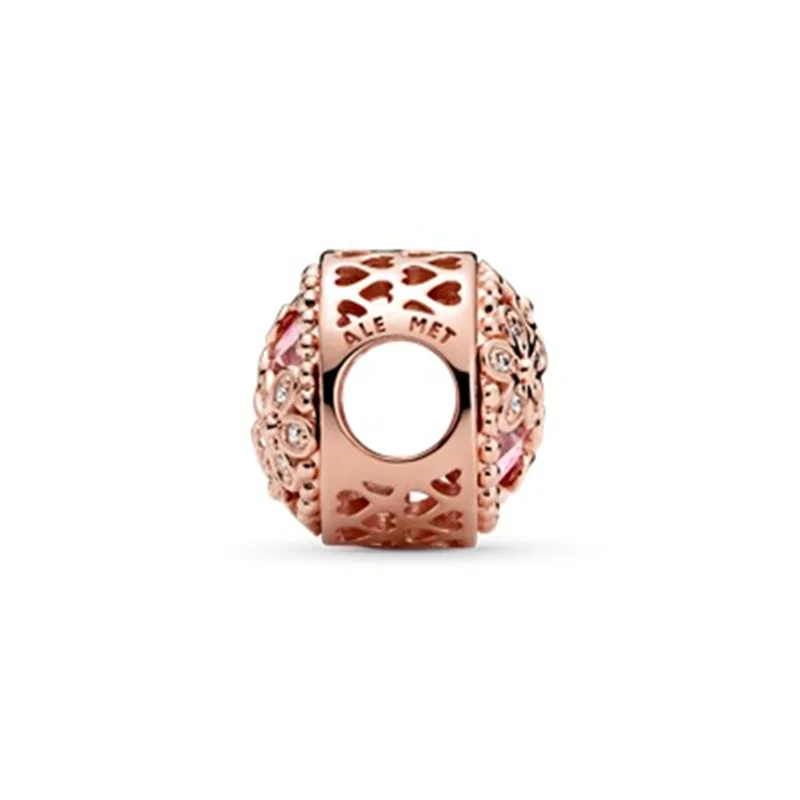 با چارم مهرهای گلهای مروارید و نگین صورتی رزگلد پاندورا، زیبایی صورتی بهار را جشن بگیرید.این چارم مهرهای و توخالی در مرکز خود نگین بزرگ و صورتی داشته که اطراف آن را گلهای مروارید یا دیزی احاطه میکنند.دیزیهای این چارم با نگینهای کوچک شفاف زیرکُنیا تزیین شده و این چارم دارای روکش رزگلد ۱۴ عیار میباشد.آن را به مجموعهی عیدانه و بهاری خود اضافه کرده و باغ خود را کامل کنید.
