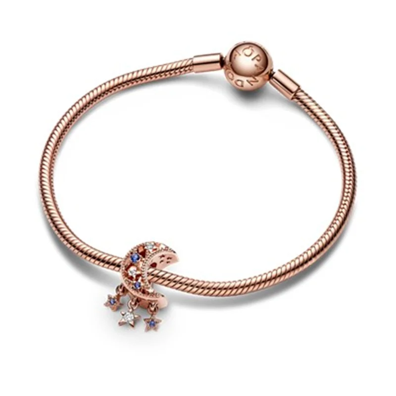 به استایل خود با چارم مهرهای ماه هلالی و ستارههای نگیندار پاندورا، کمی درخشش و نور آسمانی اضافه کنید.این چارم زیبای رزگلد که به صورت دستی طراحی و ساخته شدهاست، به شکل ماه هلالی بوده که ستارههایی روی آن برش خورده و با نگینهای آبی و شفاف تزیین شدهاند، همچنین سه ستاره نگیندار به این ماه زیبا آویزان هستند و پیام "رویایی بزرگ داشته باش" (Dream big) روی آن حکاکی شدهاست تا به شما یادآوری کند تا برای رسیدن به ستارهها دستان خود را دراز کنید و از داشتن آرزوهای بزرگ نترسید!