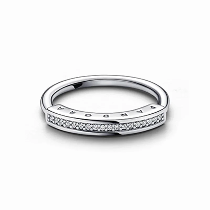 مجموعه حلقه های پاندورایی خود را کامل کنید. این حلقه نقره ای خاص دارای بخش مرکزی است که با نگین های شفاف تزیین شده. شما می توانید این حلقه را به تنهایی در دست داشته یا با حلقه های دیگر خود آن را ست کرده و استایلی چند لایه بسازید.