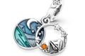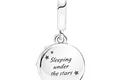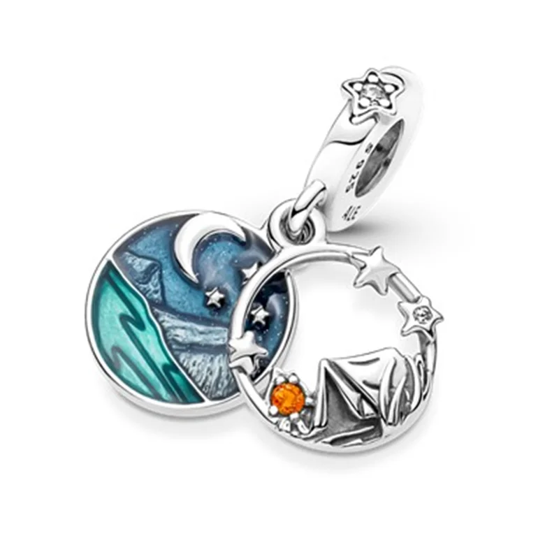 خودتان را با این چارم به منظرهای آرامشبخش برای گذراندن شب زیر نور ستارهها در چادری کوچک ببرید! این چارم شامل دو تکه آویز شامل دو دیسک است که اولین دیسک منظرهای طبیعی از آب و زیبایی آسمان شب با لعاب آبی را به تصویر میکشد و دیگری ستارهها،چادر شما و آتش کوچکی که روشن است.آتش شما از جنس یک نگین زیرکُنیا نارنجی میباشد، همچنین در جزییات طراحی ستارهها از نگین بیرنگ زیرکُنیا استفاده شده است. در پشت دیسک اول پیام "خوابیدن زیر ستارهها"(Sleeping under the stars) را دارید که به شما شبهای آرامی را یادآوری میکند که به آسمان چشمکزن خیره شده بودید.