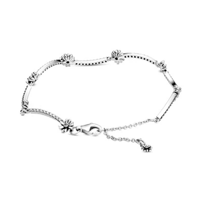 دستبند درخشان گل مینا پاندورا، دستبند زنجیری گل مینایی است که بهروزرسانی شده است.این دستبند درخشان دارای ردیفهایی از نگینهای شفاف زیرکُنیایی و گلهای مینای زیباست.بسیار انعطافپذیر بوده و در دست شما حرکت میکند. این دستبند با الهام از قدرت و زیبایی گل مینا ساخته شده تا به شما یادآوری کند آزاد و به خود واقعیتان وفادار باشید.