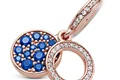 استایل خود را رنگآمیزی کنید! این چارم با روکش رزگلد ۱۴ عیار، دو بخشی بوده و دیسک اول با نگینهای آبی تیره با اندازههای متفاوت تزیین شدهاست.همچنین پشت این دیسک لوگوی پاندورا حکاکی و دیسک تو خالی دوم با ردیفی از نگینهای شفاف برای درخشش بیشتر تزیین شدهاست.این چارم آویز را با بقیهی چارمهای رنگی خود روی دستبند دقایق ست کرده و استایلی خیره کننده بسازید.