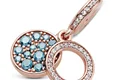 استایل خود را رنگآمیزی کنید! این چارم با روکش رزگلد ۱۴ عیار، دو بخشی بوده و دیسک اول با نگینهای آبی روشن با اندازههای متفاوت تزیین شدهاست.همچنین پشت این دیسک لوگوی پاندورا حکاکی و دیسک تو خالی دوم با ردیفی از نگینهای شفاف برای درخشش بیشتر تزیین شدهاست.این چارم آویز را با بقیهی چارمهای رنگی خود روی دستبند دقایق ست کرده و استایلی خیره کننده بسازید.