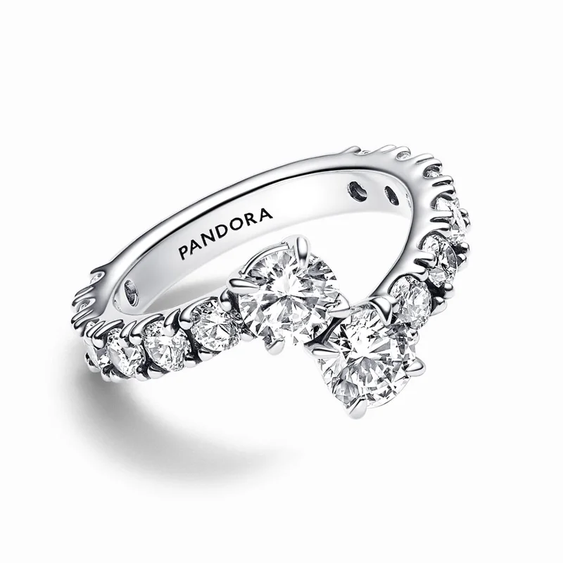 این حلقهی دو بخشی، بهترین گزینه برای استایلی مدرن و مینیمال است. این حلقه، دارای ردیفی از نگینهای شفاف زیرکُنیا میباشد. در بخش داخلی بدنهی حلقه لوگوی پاندورا حکاکی شدهاند. این حلقه را میتوانید به دست داشته و بدرخشید، یا آن را با حلقههای دیگر ست کرده و استایل خاص خود را بسازید.