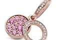 استایل خود را رنگآمیزی کنید! این چارم با روکش رزگلد ۱۴ عیار، دو بخشی بوده و دیسک اول با نگینهای صورتی با اندازههای متفاوت تزیین شدهاست.همچنین پشت این دیسک لوگوی پاندورا حکاکی و دیسک تو خالی دوم با ردیفی از نگینهای شفاف برای درخشش بیشتر تزیین شدهاست.این چارم آویز را با بقیهی چارمهای رنگی خود روی دستبند دقایق ست کرده و استایلی خیره کننده بسازید.