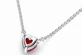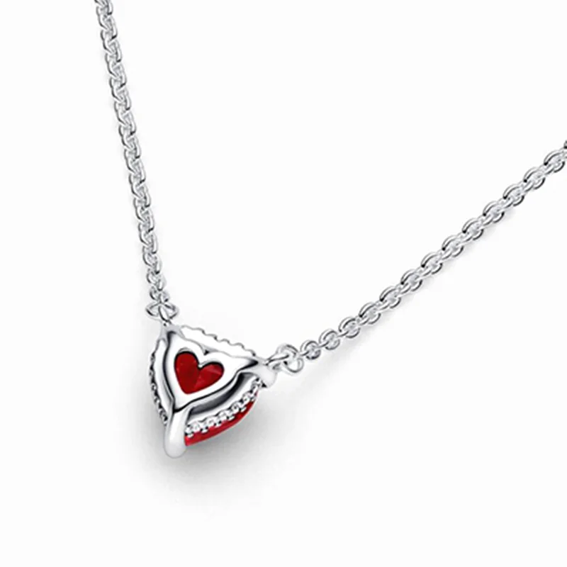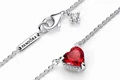 هدیه ای عاشقانه و از ته دل! این گردنبند زیبا و نقره ای ظریف به صورت دستی با نگینی قرمز و قلبی در مرکز و نگین های ریز شفاف در اطراف تزیین شده است. در انتهای زنجیر باریک این گردنبند شما لوگوی پاندورا و نگینی شفاف میبینید که به استایل شما درخشش بیشتری می آورند. این گردنبند در هر زاویه ای عشق می تاباند.