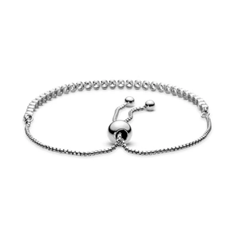 از اسم آن اشتباه برداشت نکنید این دستبند فقط برای بازیکنهای تنیس طراحی نشده است و روی مچ دست هر زنی میدرخشد! این دستبند نقرهای که با الهام از طرحهای قدیمی دستبندهای تنیسی پاندورا ساخته شده، با نگینهای شفاف زیرکُنیا تزیین و درخشندهتر شدهاست.همچنین کشویی یا لغزنده بودن گیرهی آن به شما این اجازه را میدهد که اندازه آن را به دلخواه تغییر دهید.