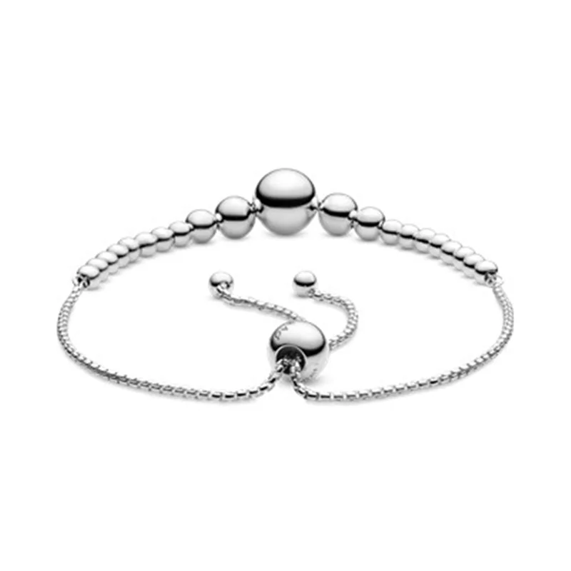 ظریفترین انتخاب،دستبند کشویی گویدار رز گلد پاندورا انتخابی مینیمالیست و شیک.این طرح نقرهای به صورت دستی طراحی شده و به دست شما درخشندگی شیکی میدهد.این کار بهترین همراه برای دستبندهای پاندورایی دیگر شماست.گویهای دستبند اندازههای متفاوتی دارند.گوی مرکزی از همه بزرگتر و به مرور اندازه گویها کوچکتر میشود.این طرح که نماد "تداوم" است بهترین هدیه برای عزیزان شما میباشد تا به آنها یادآوری کنید عشق شما همیشگی است.