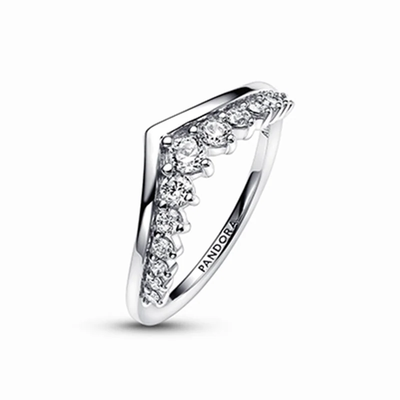 انگشتر جناغی پرفروش نقرهای ما با نگین های درخشان و شناور اکنون ارتقا یافته است. این انگشتر تاجی به شکلی ساده و در عین حال شیک، با نگین های درخشنده تزیین شده است و میتوان آن را به تنهایی برای داشتن ظاهری خاص پوشید، یا آن را با حلقههای جناغی دیگر روی هم قرار داده و ست کرد تا ظاهری منحصربهفرد ایجاد کنید.