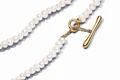 استایلی که با گذشت زمان قدیمی نمیشود! این گردنبند با مرواریدهای پرورش یافته در آب شیرین ساخته شده است. دقت داشته باشید که مرواریدهای طبیعی در شکلها و اندازههای متفاوت برداشت میشوند و پس از پروسه سفیدسازی برای ساخت در جواهرات ما استفاده میشوند.