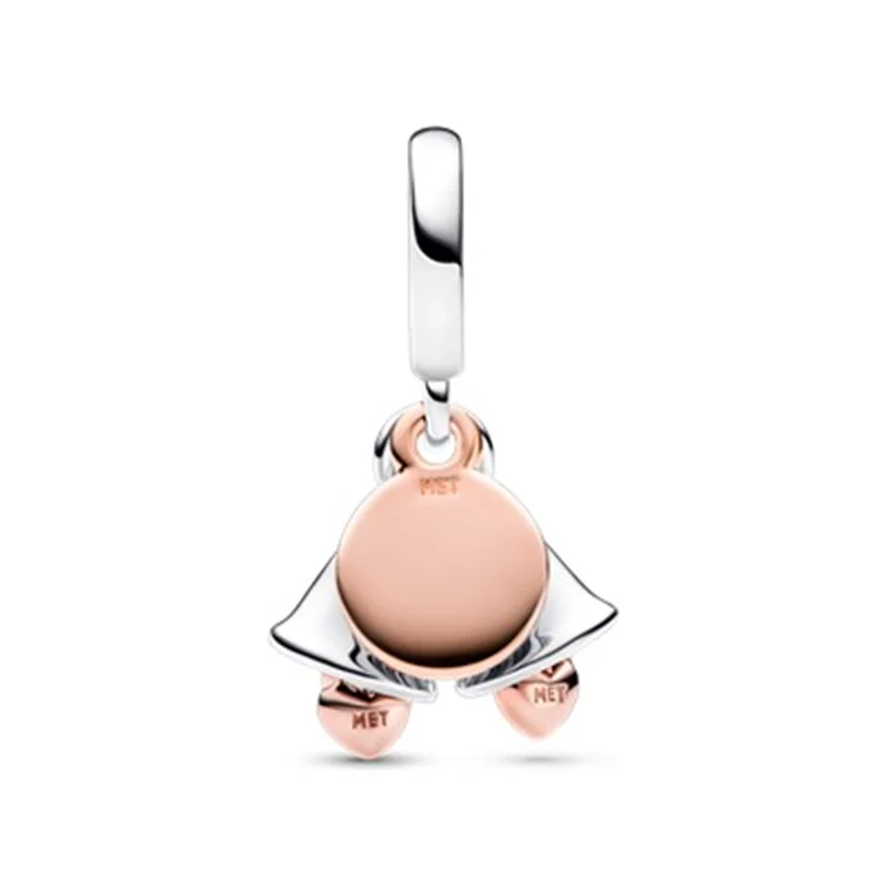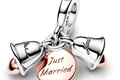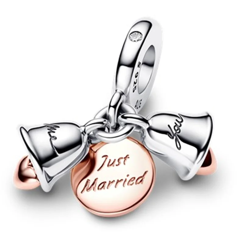 بگذارید زنگوله ها برای زوجی خوشبخت به صدا درآیند! این چارم دو رنگ زیبا بهترین گزینه برای جشن گرفتن نقطه عطفی جدید در داستان عشق شماست. این چارم آویز به شکل دو زنگوله نقره ای با حکاکی کلمات "تو" و "من" همراه با یک دیسک رزگلد با پیام "تازه مزدوج شده" طراحی و ساخته شده است.آن را به عنوان یادگاری از روز خاص خود و یا برای جشن گرفتن تمام خاطرات جدیدی که با خواهید ساخت، روی دستبند مورد علاقه خود بپوشید.