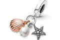 این چارم خاص سه تکه با الهام گرفتن از زیبایی صدفها و مرواریدهای اعماق اقیانوس طراحی شده،با اضافه کردن این چارم به دستبند نقرهی خود ساحل را میتوانید همیشه همراه خود داشته باشید! آویزهای چارم شما شامل یک ستاره دریایی نقره با مهرههای کوچک برجسته، یک مروارید پرورش یافته در آبهای شیرین و یک صدف با روکش رُز گلد ۱۴ عیار با شیارها و جزییات طبیعی هستن که با پیام "تو گنج من هستی"(You are my treasure) برای ساحلنشینیهای شما بهترین انتخاب است.
